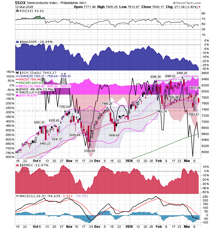 After the market closes updated data on the NASDAQ 100 and Point and Figure Data for the NDX. Also Point and Figure Data on the 30 SOX Components. An explanation of PnF Charting can be found here: