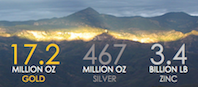 From the web site: Recently Independent Mining Consultants of Tucson, Arizona reported a NI 43-101 measured and indicated resource estimate of 14.7 million ounces of gold, 396 million ounces of silver and 2.6 billion pounds of zinc plus an inferred resource of 1.9 million ounces gold, 38 million ounces silver and 212 million pounds of zinc. On a gold equivalent basis, Metates contains 20.2 million ounces of gold in measured and indicated material along with 2.4 million ounces in the inferred category. Metates remains open along strike In both directions.
