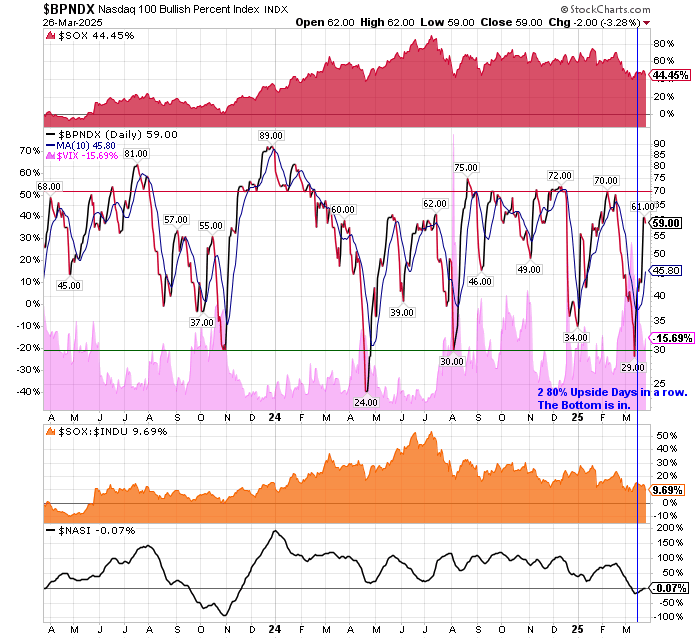 After the market closes updated data on the NASDAQ 100 and Point and Figure Data for the NDX. Also Point and Figure Data on the 30 SOX Components. An explanation of PnF Charting can be found here: