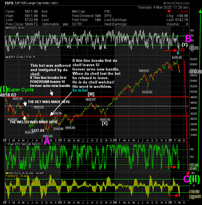 The Perma Bull will call a bottom at every bounce all the way down to target. He and his chartist have now called a total of five bottoms as the absolute lows for the correction.The last one at 3491 on October 13, 2022, will be the next one the market will take out. Eventually they will be right but not for a long time and many bottoms yet to come. They prove the danger of having a directional bias.