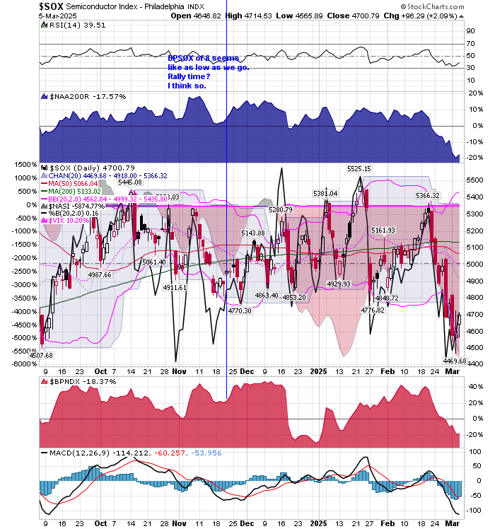 April 23, 2024 The market has been over sold. BPNDX reading of 24 and a BPSOX of only 1 has led me to buy the SMH for an oversold bounce.