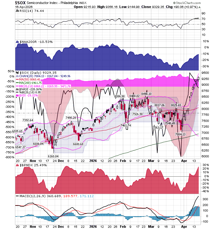 After the market closes updated data on the NASDAQ 100 and Point and Figure Data for the NDX. Also Point and Figure Data on the 30 SOX Components. An explanation of PnF Charting can be found here:
