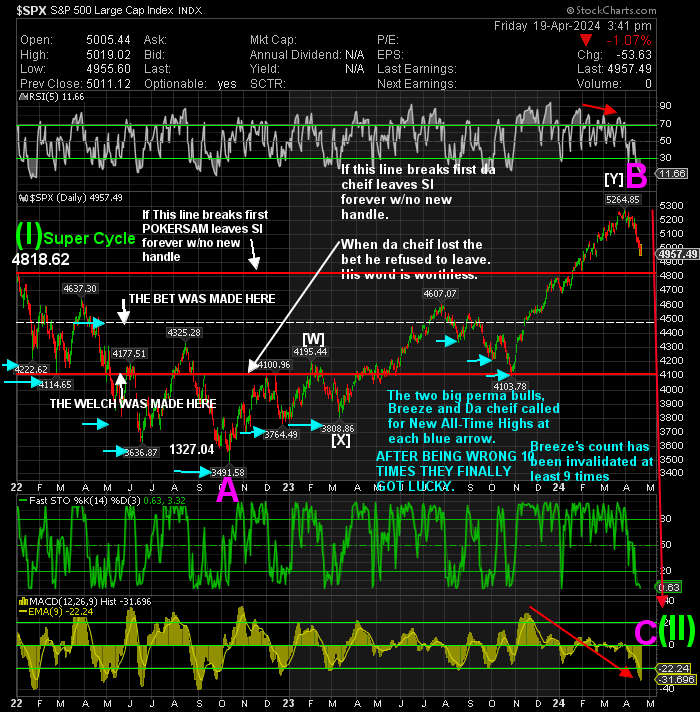 Windy, In your last bit of nonsense addressed to me you had one thing correct. I do post detailed charts in all time frames to my subs. You want me to post them to you. Sorry, I will not do that. I know you need the help desperately, but you will not get any more help from me than what I doll out here.