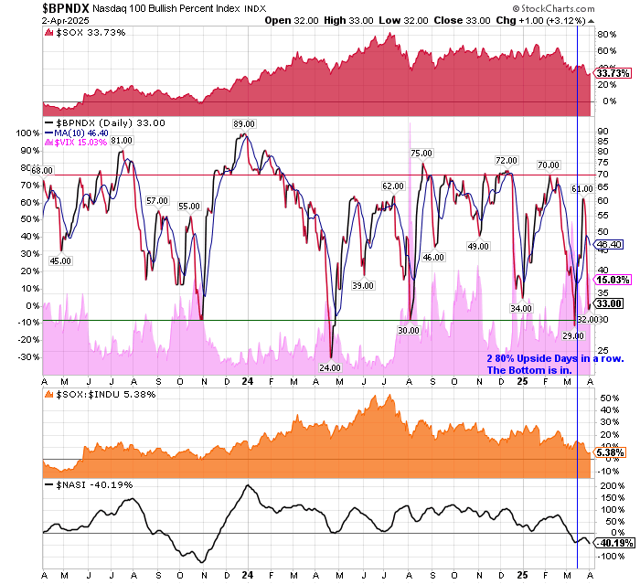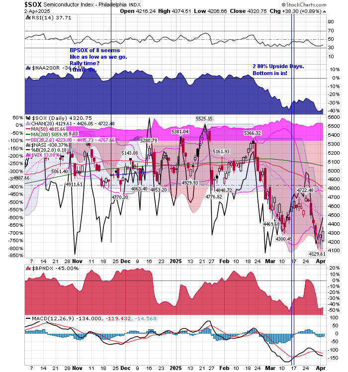 April 23, 2024 The market has been over sold. BPNDX reading of 24 and a BPSOX of only 1 has led me to buy the SMH for an oversold bounce.