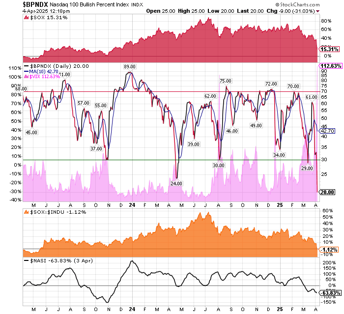 After the market closes updated data on the NASDAQ 100 and Point and Figure Data for the NDX. Also Point and Figure Data on the 30 SOX Components. An explanation of PnF Charting can be found here: