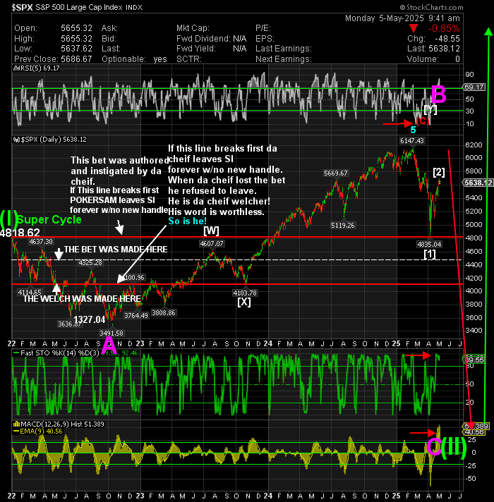 Windy, In your last bit of nonsense addressed to me you had one thing correct. I do post detailed charts in all time frames to my subs. You want me to post them to you. Sorry, I will not do that. I know you need the help desperately, but you will not get any more help from me than what I doll out here.