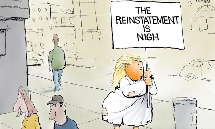 ( Our unhappy, racist, sociopathic, narcissist, man-baby, diaper-wearing, probably a traitor president, Trumpty Dumpty is no longer in the picture!)