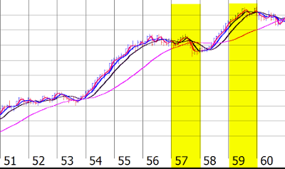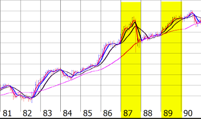 To Clarify the signals are generated when the Blue 14 period ATR goes below the long term 200 period Moving average.... and that generates a buy a the Average True Range of the EUR/JPY cross / by WTIC is coming down.. what is nice about this model is that you can have signals that are in effect for 2 years or so at a time.