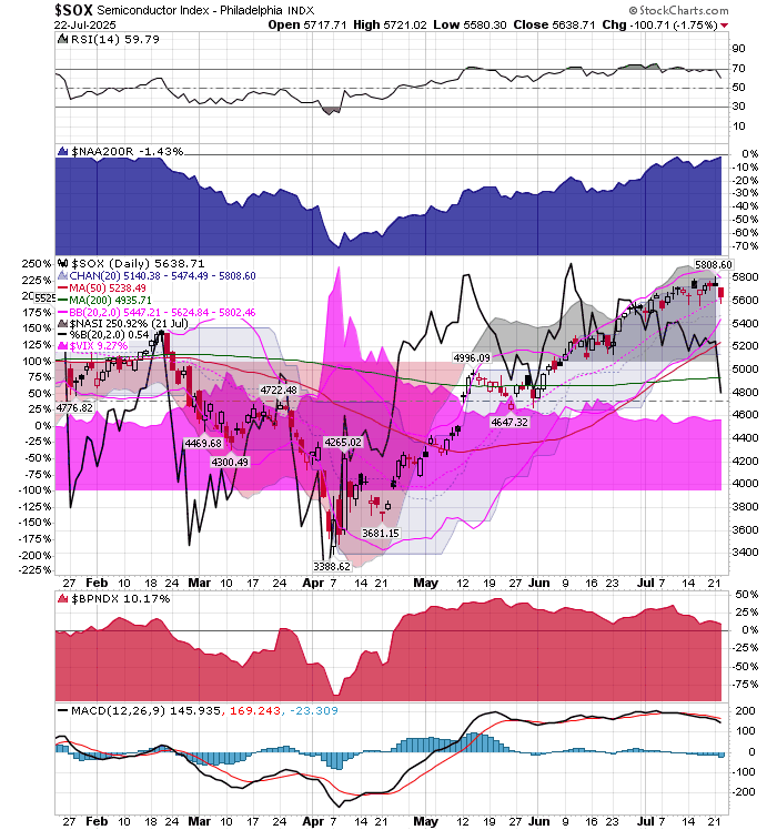 After the market closes updated data on the NASDAQ 100 and Point and Figure Data for the NDX. Also Point and Figure Data on the 30 SOX Components. An explanation of PnF Charting can be found here: