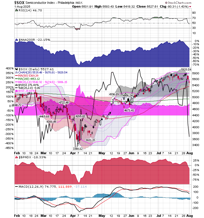 After the market closes updated data on the NASDAQ 100 and Point and Figure Data for the NDX. Also Point and Figure Data on the 30 SOX Components. An explanation of PnF Charting can be found here: