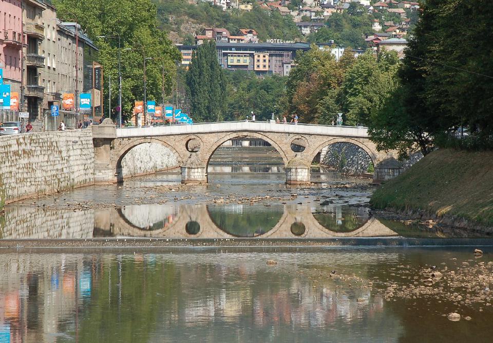 the Latin Bridge, Sarajevo Bosnia. Site of the assassination of Archduke Franz Ferdinand of Austria by Gavrilo Princip in 1914