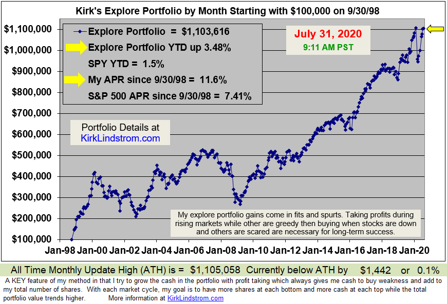 S&P 500 with dividends reinvested over same period as my newsletter: ==> My SPY Charts