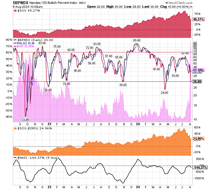 April 23, 2024 The market has been over sold. BPNDX reading of 24 and a BPSOX of only 1 has led me to buy the SMH for an oversold bounce.