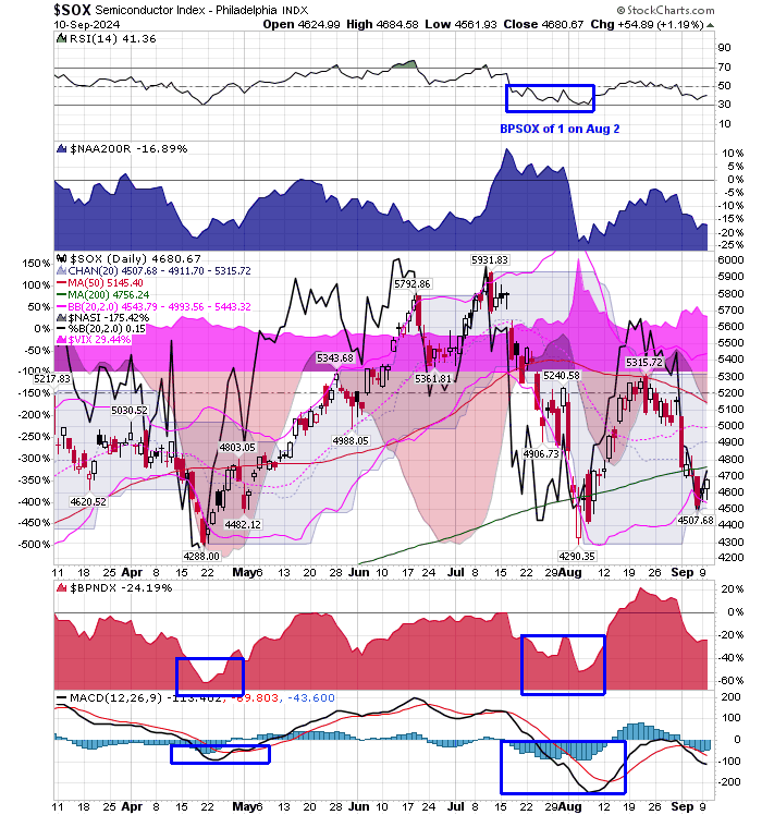 April 23, 2024 The market has been over sold. BPNDX reading of 24 and a BPSOX of only 1 has led me to buy the SMH for an oversold bounce.