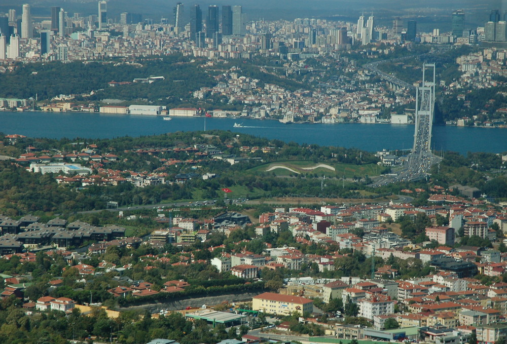 Where East meets West. Istanbul, Turkey's "Bosphorus Strait" as viewed from the Asian side.. Europe on the opposite shore