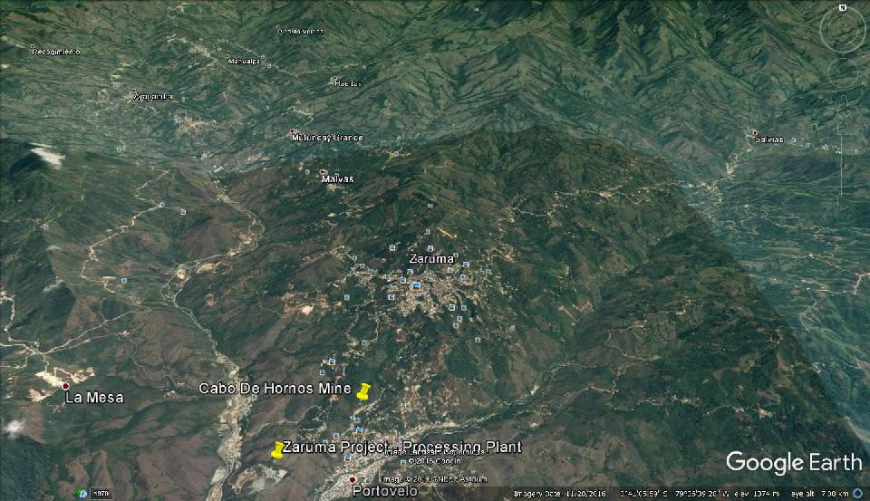 Commenced mining operations in early January 2017. Mining and transportation of ore is contracted out. Ore transported approximately 180 km by road to Zaruma processing facility. Production from a number of small open pits, processing plant currently processing 800 tpd .